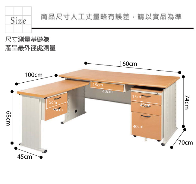 | 【綠家居】普斯利L型5.3尺辦公桌組合(二色可選+單活動櫃+側桌) 產品尺寸: 組合尺寸:(寬)160x (深)170 x(高)74 / 公分 辦公桌:(寬)160x (深)70 x(高)74 / 公分 活動櫃:(寬)40x (深)57 x(高)65 / 公分 側桌:(寬)100x (深)45 x(高)68 / 公分