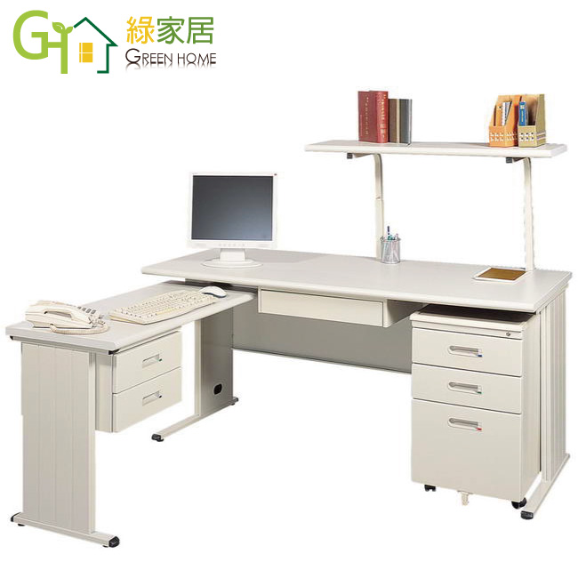 【綠家居】培爾L型5尺辦公桌組合(單活動櫃+側桌+桌上架)