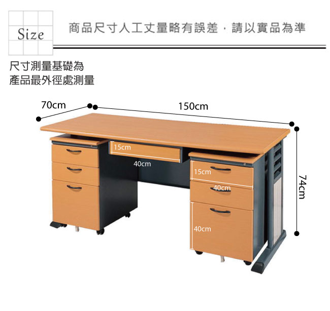| 【綠家居】艾爾5尺辦公桌組合(二色可選+單抽+活動櫃X2) 產品尺寸: 辦公桌:(寬)150x (深)70 x(高)74 / 公分 活動櫃:(寬)40x (深)57 x(高)65 / 公分