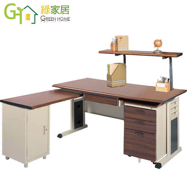 【綠家居】艾培L型5尺辦公桌組合(單活動櫃+側桌櫃+桌上架)