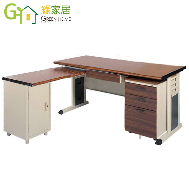 【綠家居】艾培L型6尺辦公桌組合(單活動櫃+側桌櫃)
