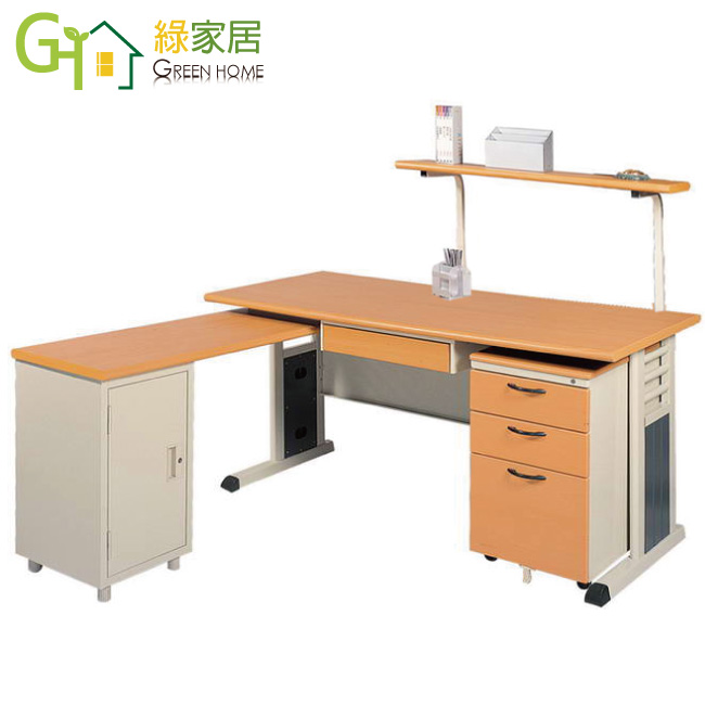 【綠家居】泰爾L型5.3尺辦公桌組合(單活動櫃+側桌櫃+桌上架)