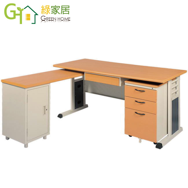 【綠家居】泰爾L型5尺辦公桌組合(單活動櫃+側桌櫃)
