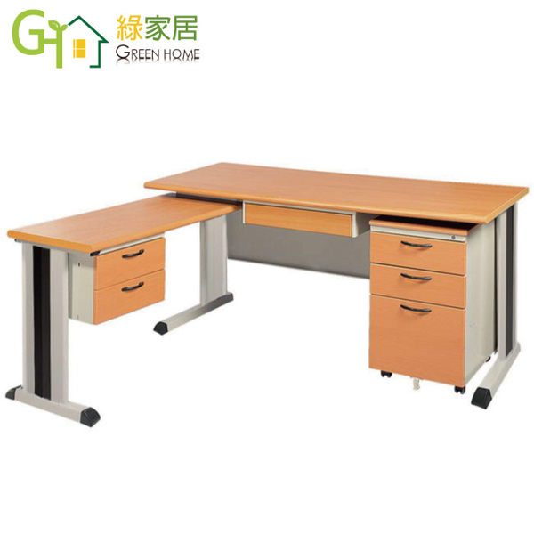 【綠家居】梅爾L型5尺辦公桌組合(單活動櫃+側桌)