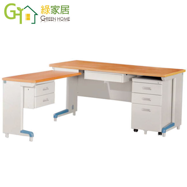 【綠家居】波克L型6尺辦公桌組合(單活動櫃+側桌)