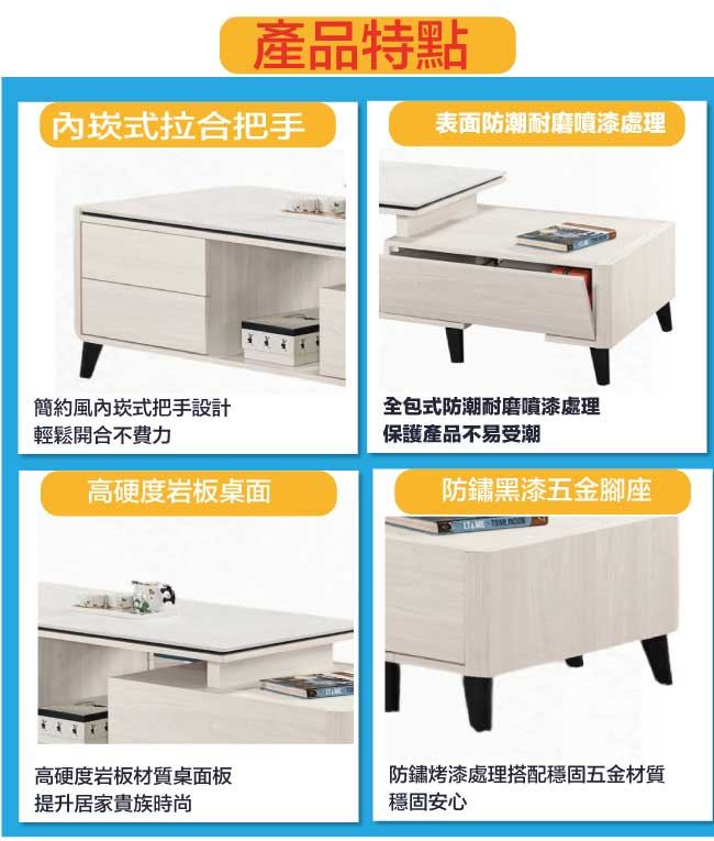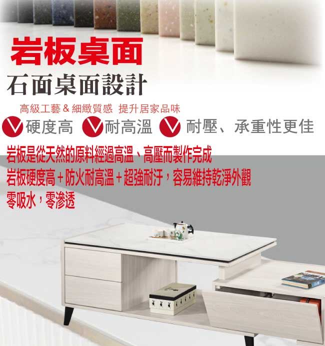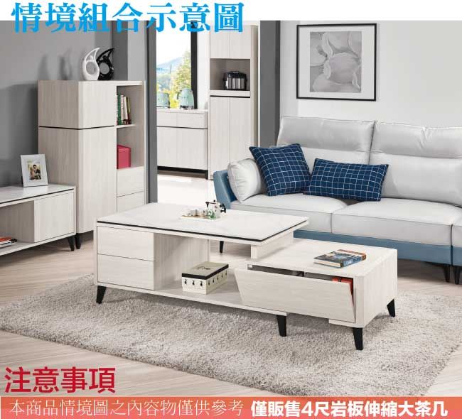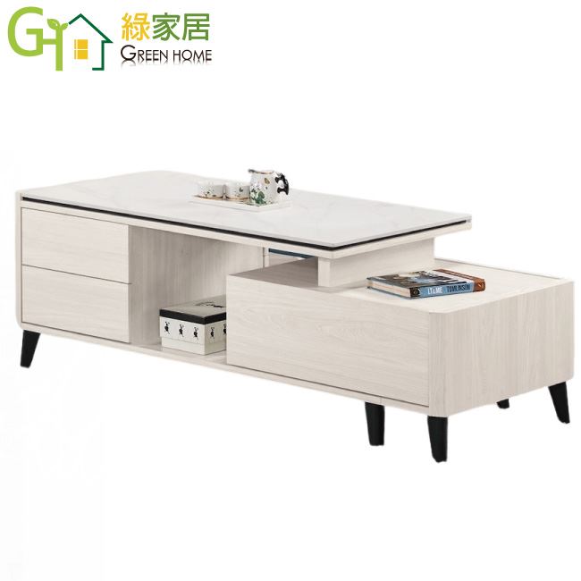 【綠家居】卡蘿莉4尺岩板可伸縮機能性大茶几