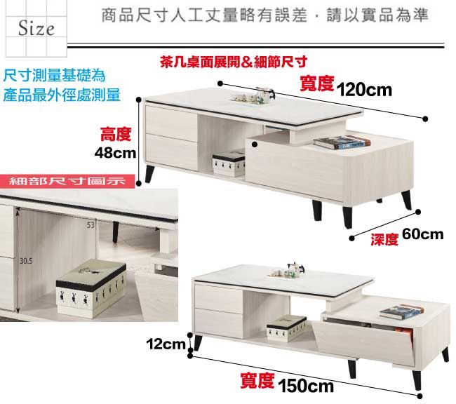 材質 | ◆產品名稱:【綠家居】卡蘿莉4尺岩板可伸縮機能性大茶几 尺寸:(寬)120-150x(深)60(高)48公分 ◆材質: 材質:防蛀木心板+防鏽黑漆五金腳座+五金滑軌結構+12mm高硬度岩板 噴漆:防潮耐磨噴漆處理