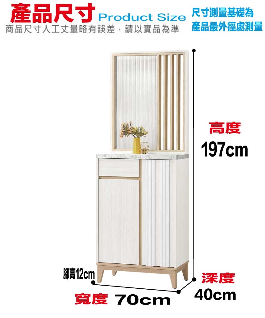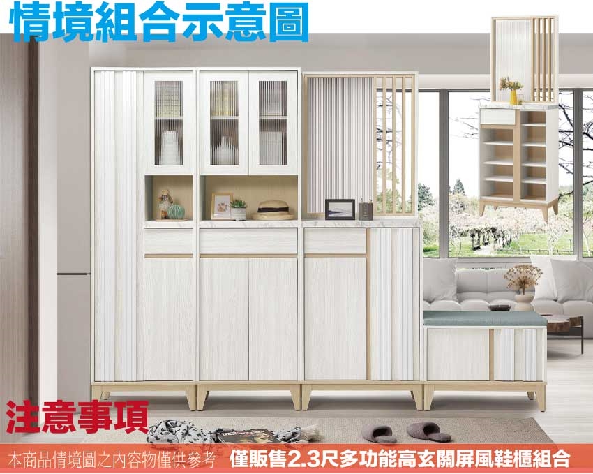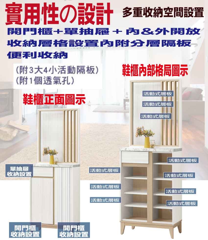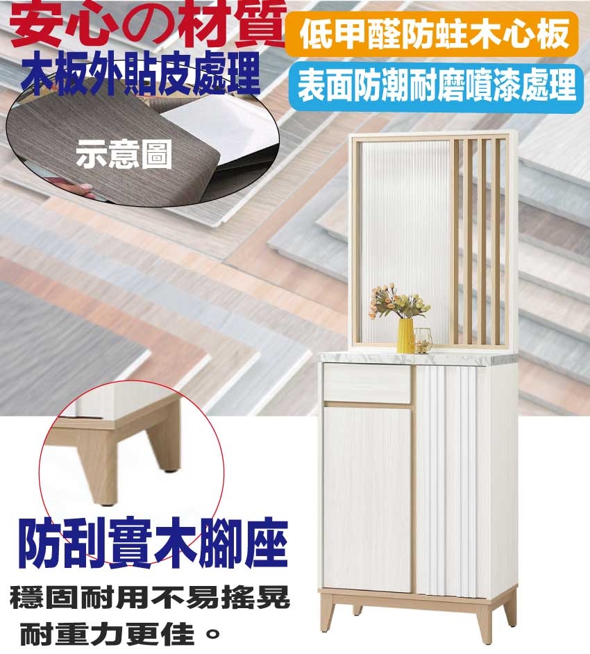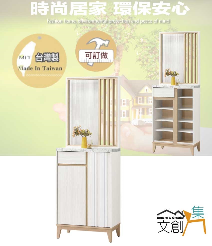 - ◆產品名稱:【綠家居】亞畢克2.3尺二門單抽玻璃屏風高玄關櫃