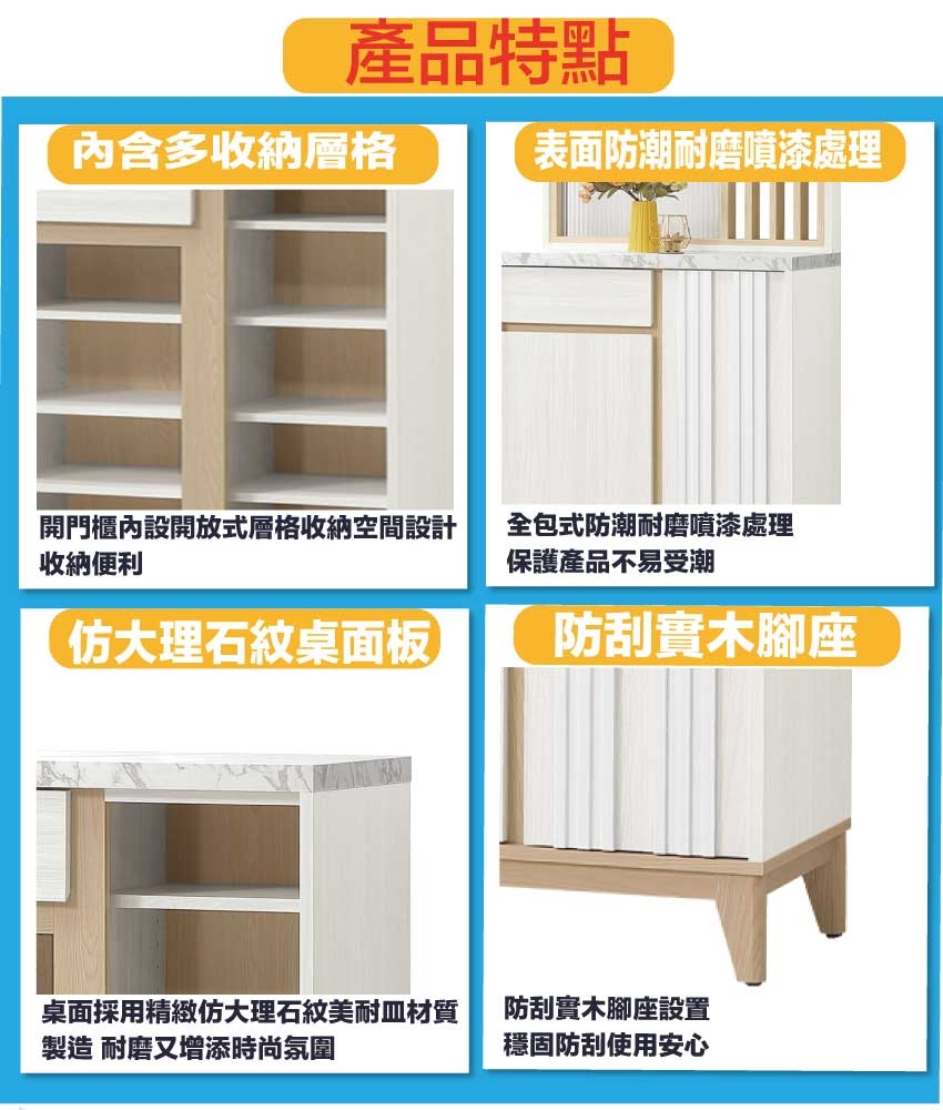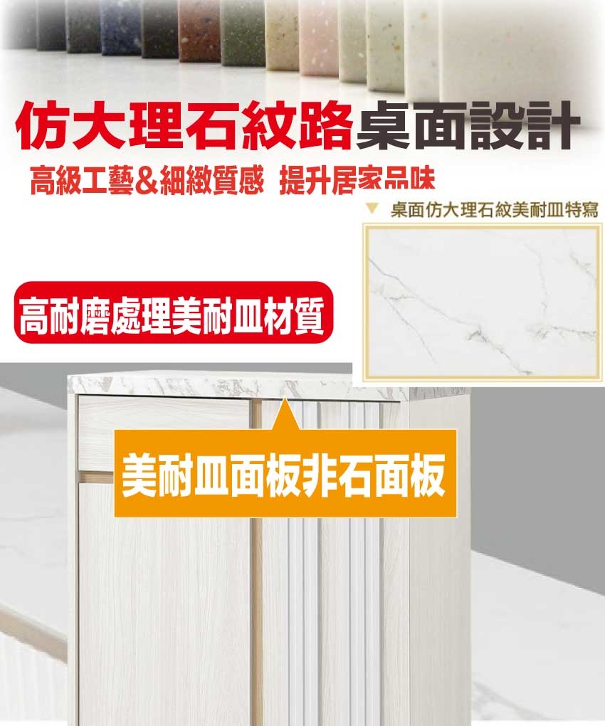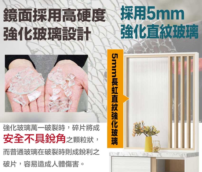 材質:防蛀木心板+防刮實木腳座+五金滑軌結構+5mm長虹直紋玻璃+仿大理石紋耐磨美耐皿材質桌面板