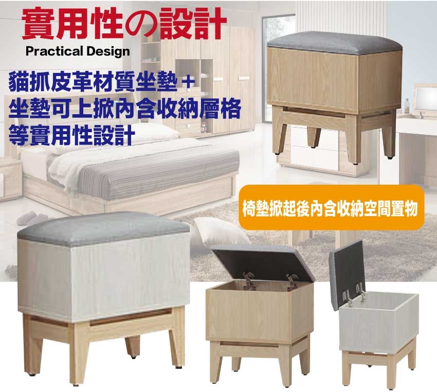【綠家居】歌斯1.3尺貓抓皮可收納化妝椅(二色可選)