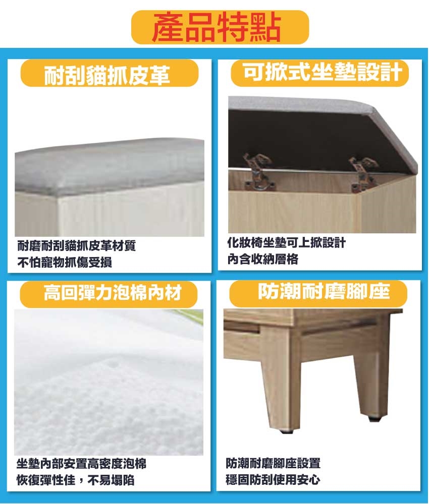 - ◆產品名稱:【綠家居】歌斯1.3尺貓抓皮可收納化妝椅(二色可選)