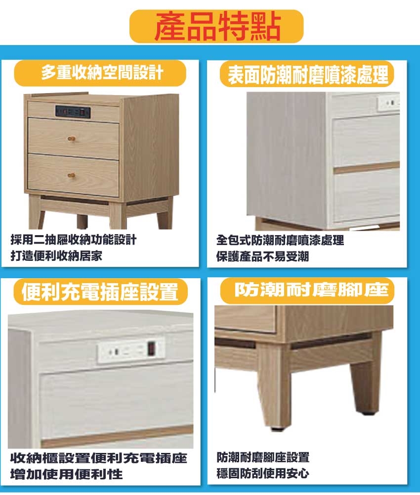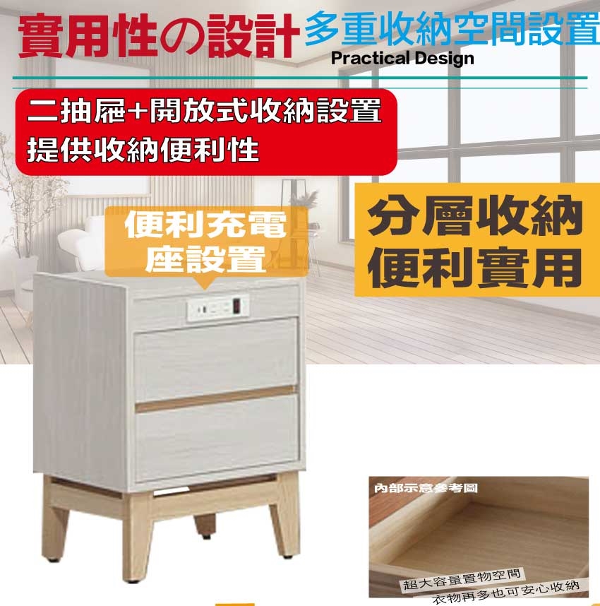 - ◆產品名稱:【綠家居】萬斯1.3尺插座二抽收納櫃(二色可選)