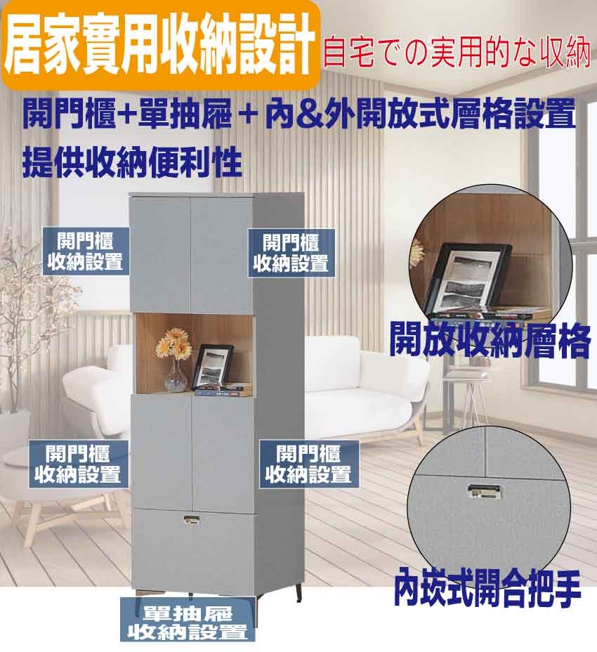 開門櫃+單抽屜+內&外開放層格