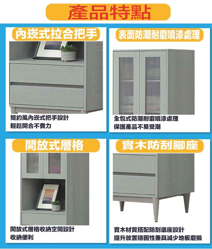 材質:防蛀木心板+實木腳座&防刮腳粒+防夾手緩衝門片五金+PC壓克力面板