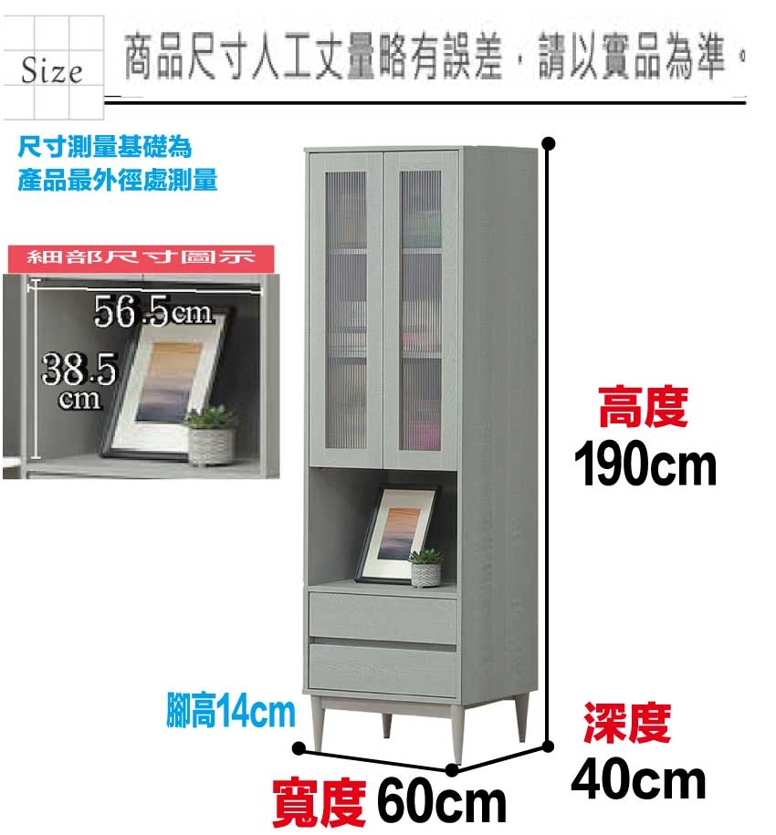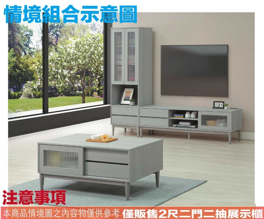 - ◆產品名稱:【綠家居】卡珊2尺二門二抽展示櫃/收納櫃