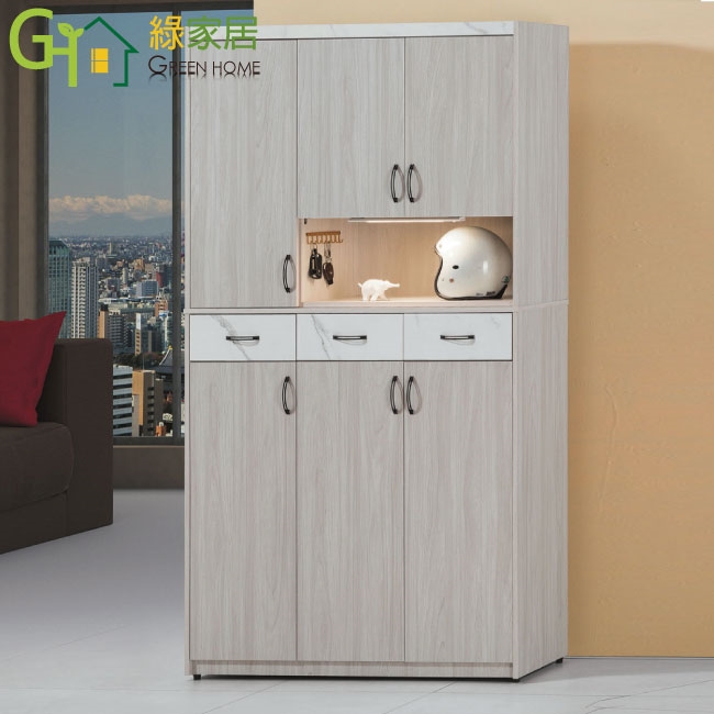 【綠家居】皮登4尺六門三抽感應燈高鞋櫃(仿大理石紋路耐磨美耐皿面板)