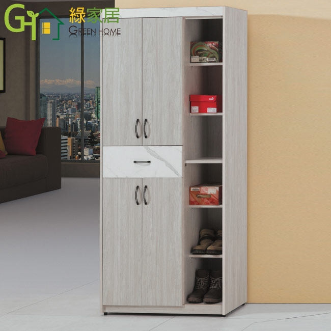 【綠家居】皮登2.7尺四門單抽高鞋櫃(仿大理石紋路耐磨美耐皿面板)
