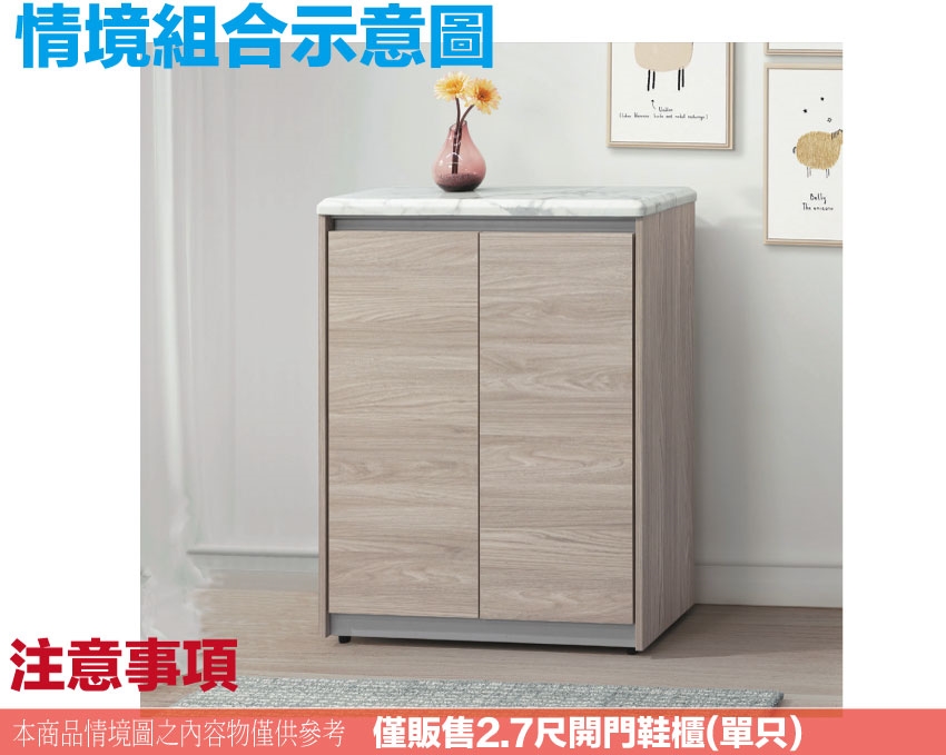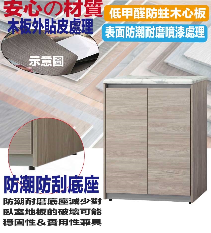 - ◆產品名稱:【綠家居】羅克2.7尺二門低鞋櫃(仿大理石紋路耐磨美耐皿面板)