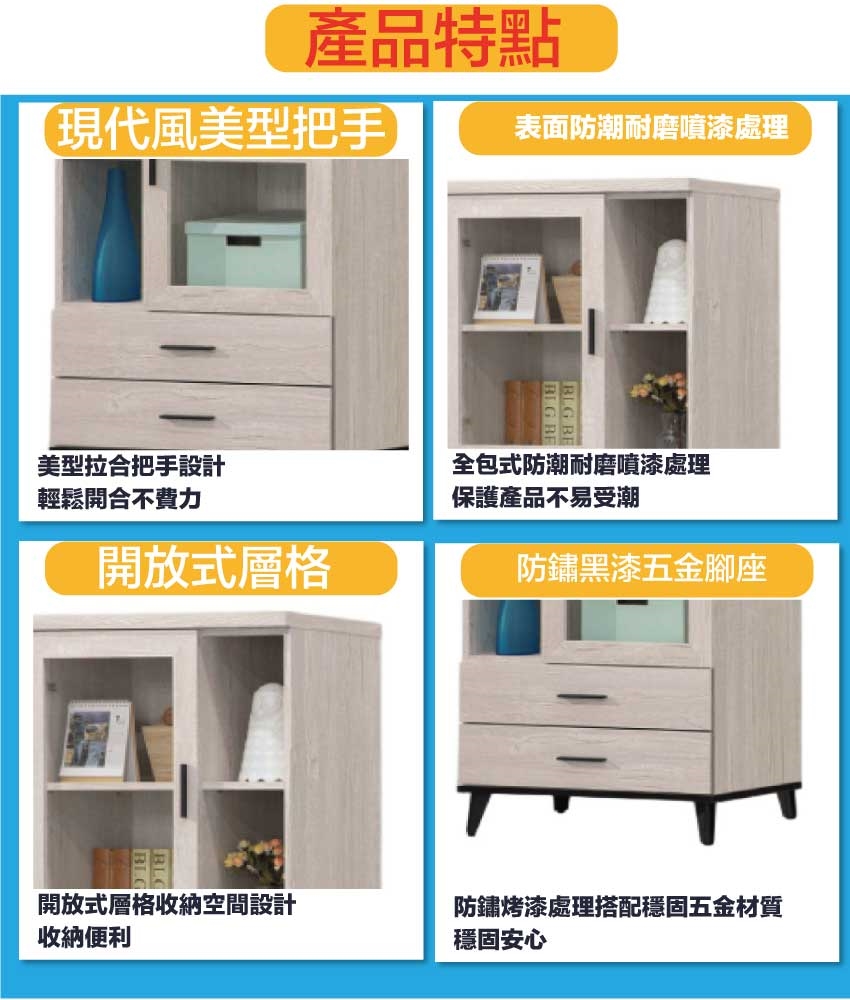 【綠家居】凱曼2.2尺二門二抽高收納櫃