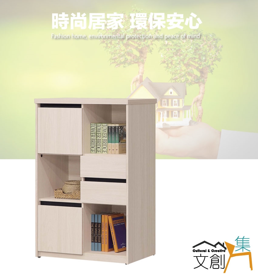 開門櫃+二抽屜+內&外開放層格