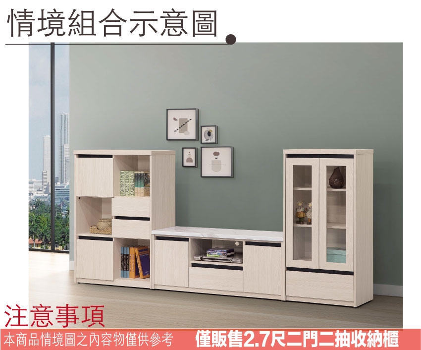 - 產品名稱:【綠家居】凱拉2.7尺二門二抽中收納櫃