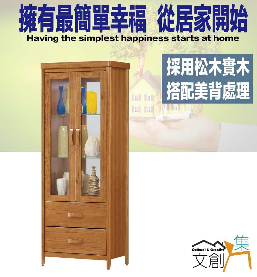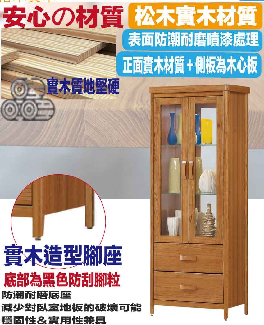 【綠家居】巴格2.5尺二門二抽實木展示櫃
