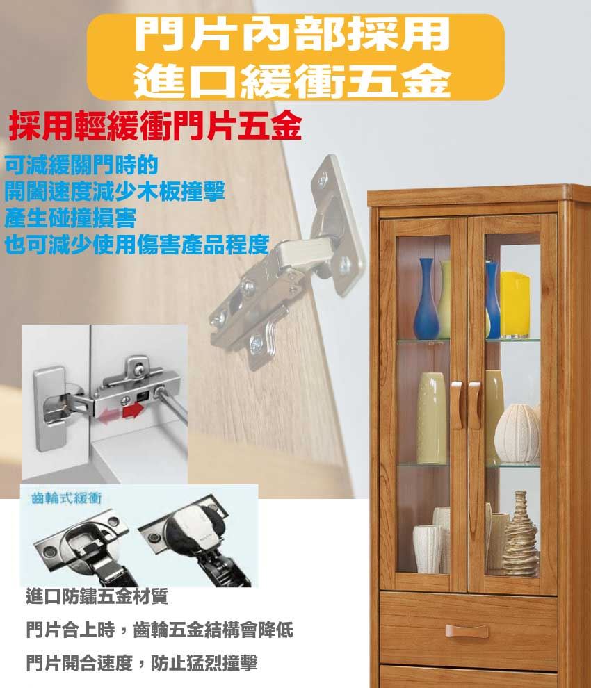 材質:松木實木+防蛀木心板+實木造型腳座+防夾手緩衝門片五金+強化玻璃門片&層板