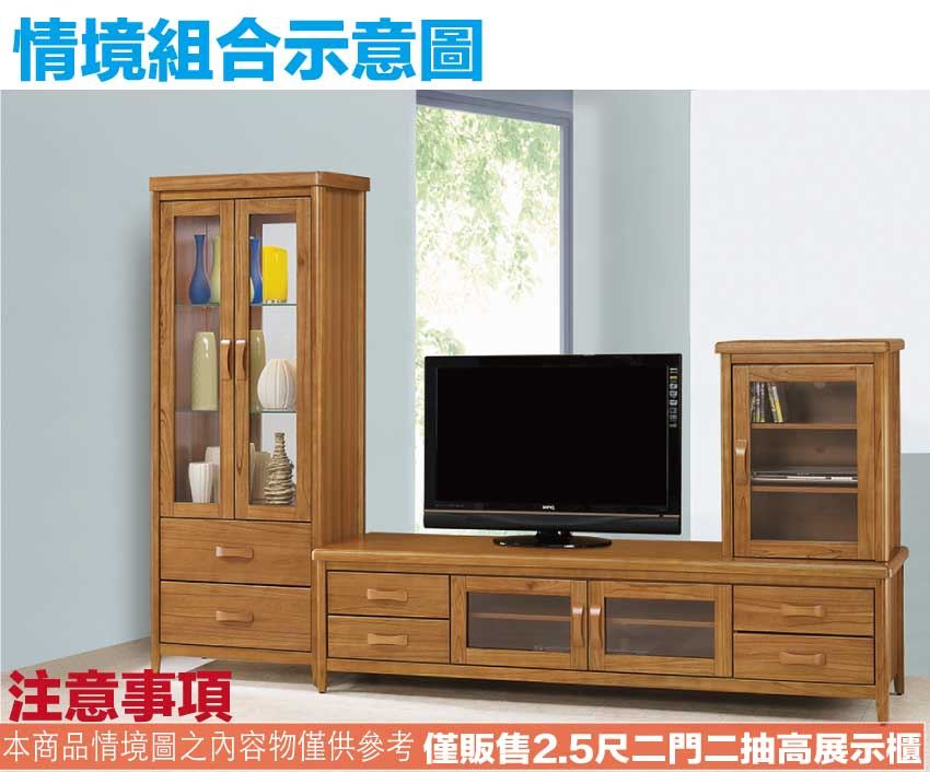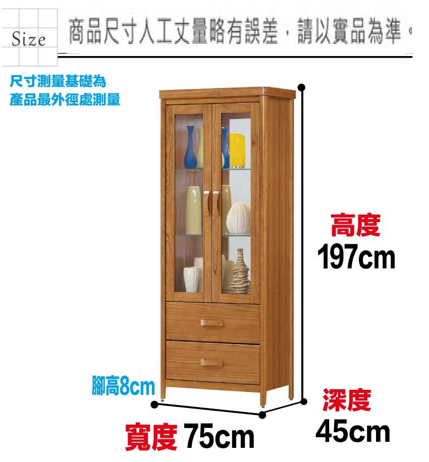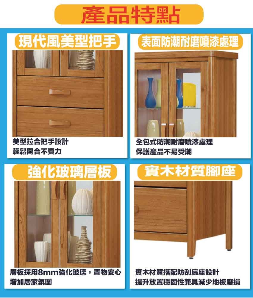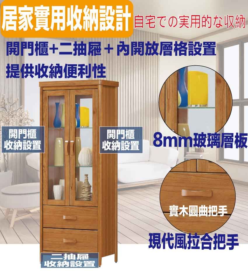 - 產品名稱:【綠家居】巴格2.5尺二門二抽實木展示櫃