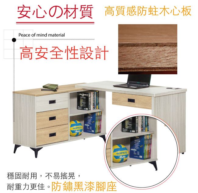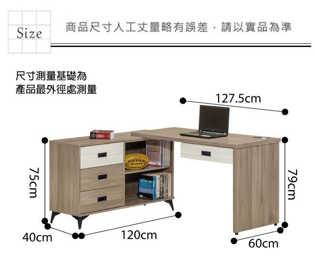 材質 | ◆產品名稱:【綠家居】甘托克 現代4尺三抽多功能書桌/電腦桌(二色可選) 書桌尺寸:(寬)120x(深)40-127.5x(高)79/公分 ◆材質: 材質:防蛀木心板+黑鐵砂腳座+五金滑軌結構 塗漆:優利坦全包式耐磨噴漆處理 |