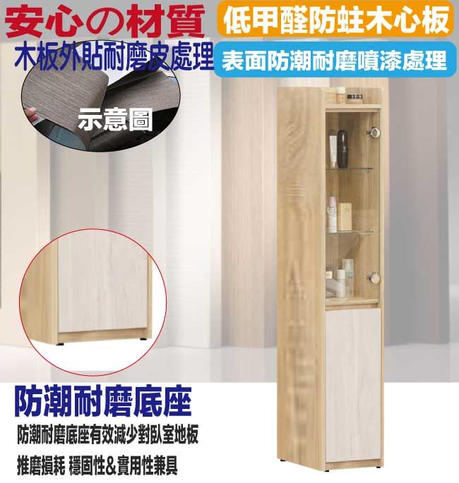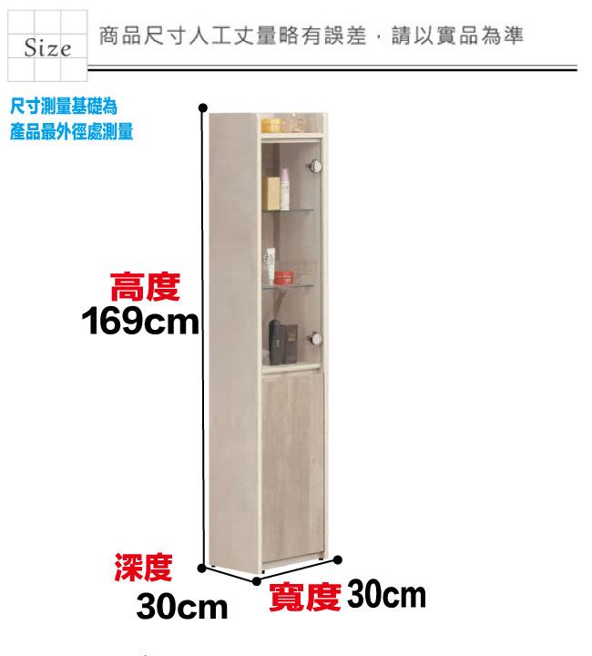 材質 | ◆產品名稱:【綠家居】奧蘭1尺雙開門玻璃側邊收納櫃(四色可選) 尺寸:(寬)30x(深)30x(高)169/公分 ◆材質: 材質:防蛀木心板+防潮耐磨底腳座+強化玻璃鏡面 噴漆:防潮耐磨噴漆處理 |