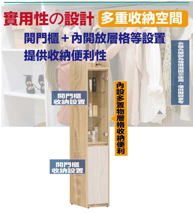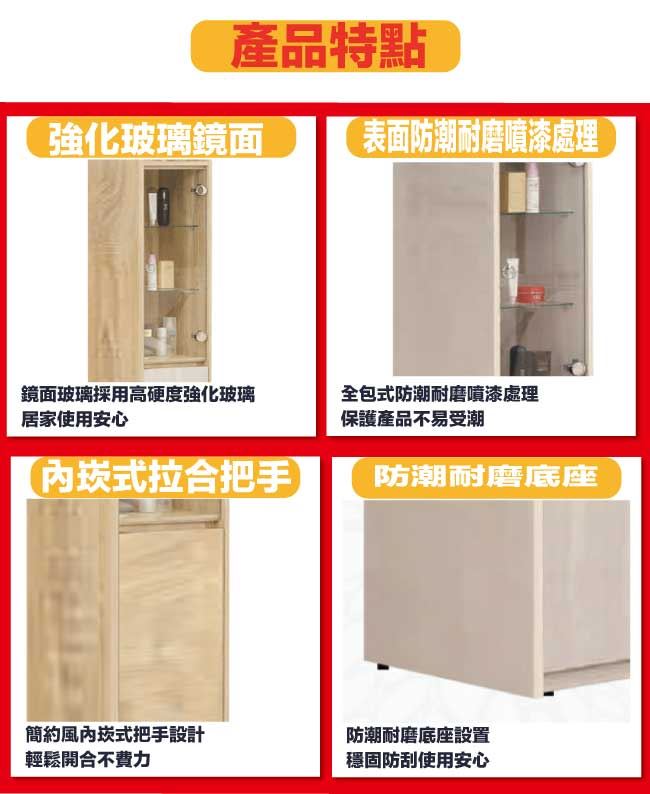【綠家居】奧蘭1尺雙開門玻璃側邊收納櫃(四色可選)