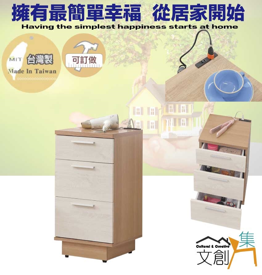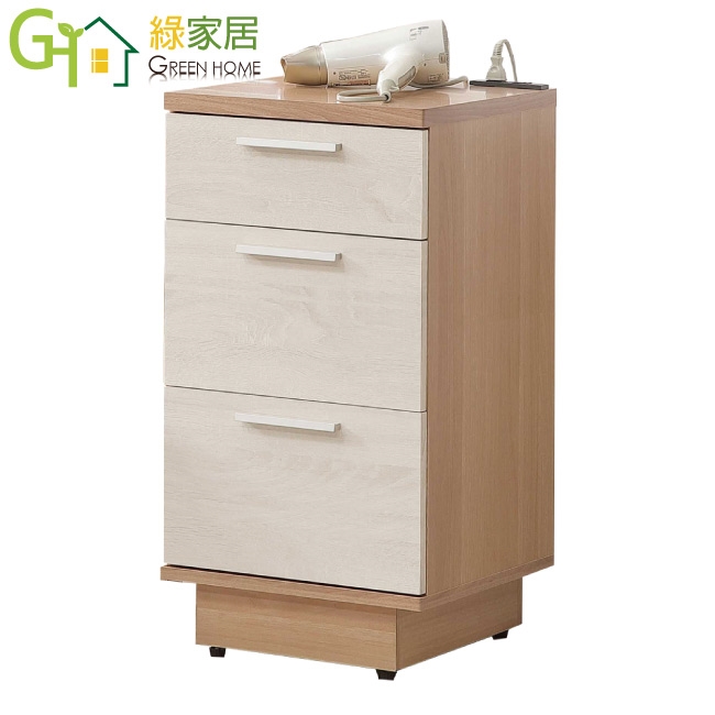 【綠家居】賓利雙色1.3尺三抽插座側邊櫃