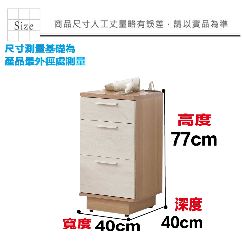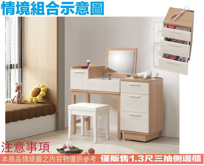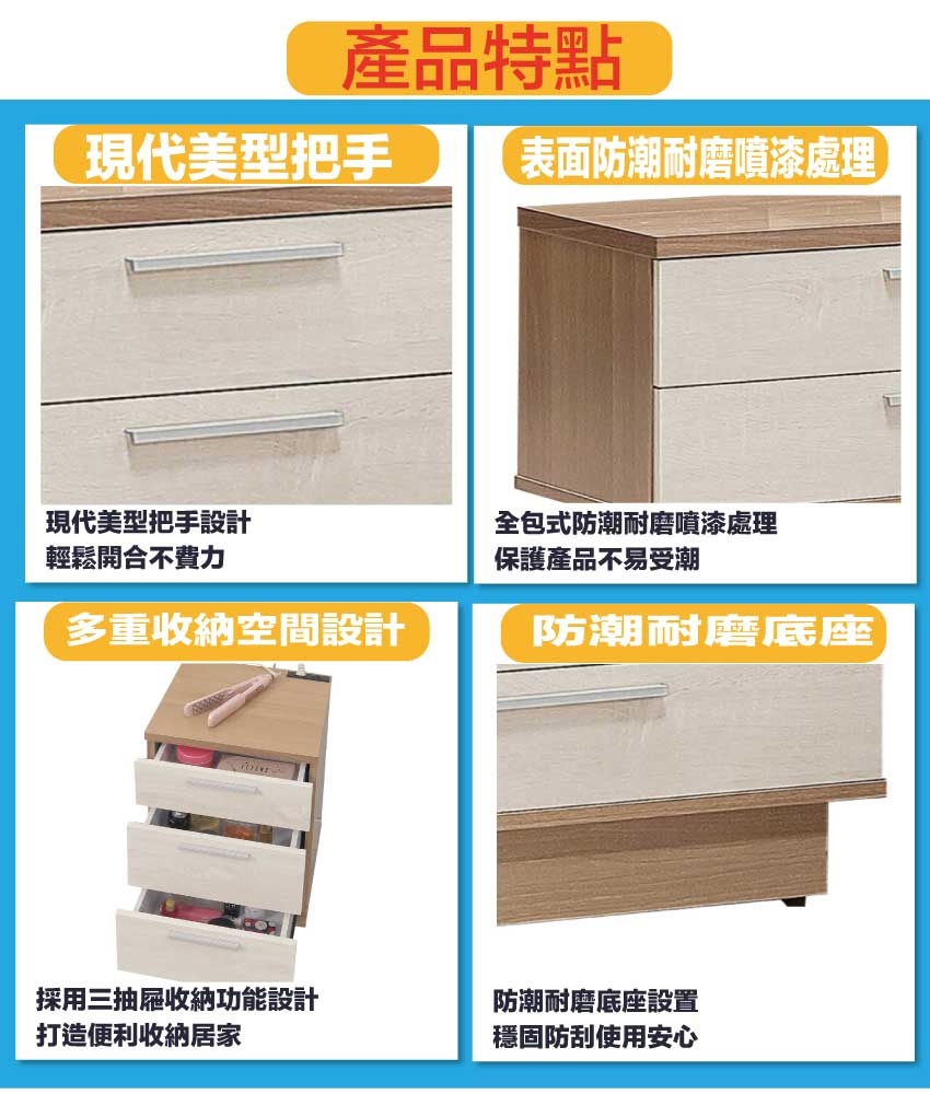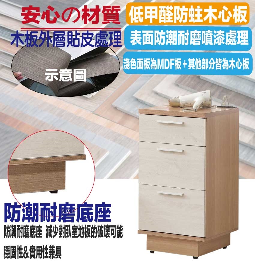 - ◆產品名稱:【綠家居】賓利雙色1.3尺三抽插座側邊櫃