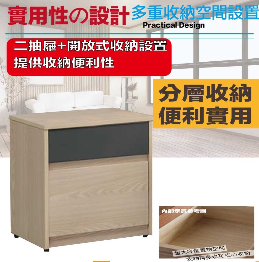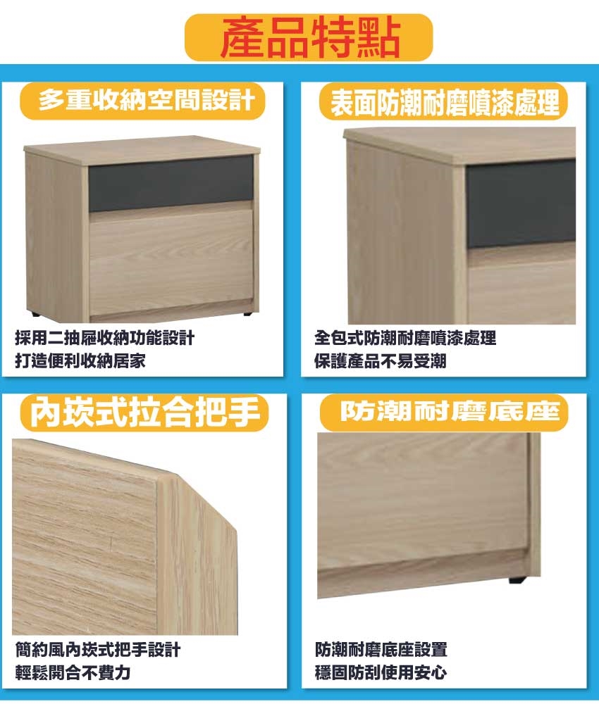 - ◆產品名稱:【綠家居】唐斯1.6尺雙色二抽床頭櫃