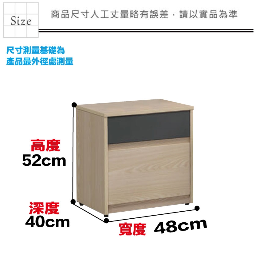 尺寸:(寬)48x(深)40x(高)52/公分 ◆材質: 材質:防蛀木心板+防潮耐磨底腳座+五金滑軌結構 噴漆:防潮耐磨噴漆處理 ◎注意事項: 1.接單後,會有專員與您電聯確認送貨時間。 2.需以吊車吊運以當地吊車行情計,費用由消費者支付。 3.備註:本商品不含圖片上、家飾...等,情境圖之內容僅供參考。 4.請於配送人員到場時,檢查商品有無缺失,以免造成爭議。 5.允許的誤差尺寸範圍+-2%。 6.因拍攝燈光與電腦解析度瑩幕不同可能會造成實品與網頁上商品有些許色差,商品以收到實品為主。 ◎收貨與退貨: 1.實因特殊地型限制及(山區、濱海鄉、鎮、村、區)無法送貨時,本公司保有出貨與否之權利(下單後會由專人告知是否可配送)。 2.有電梯不收取費用! 無電梯樓層超過4樓以上(包含4樓)一樓層費用200元,現場支付給服務員。 3.超過鑑賞期,恕不接受退貨。 4.限非人為因素破壞毀損,才可退貨。 5.若退貨時,收件時間請與廠商協調,確保自己權益。 6.退貨時應保留贈品及附件完整(如有遺失部分,需酌收費用)。 ◎備註: .無回收服務。 .收貨與退貨:實因特殊地型限制及(山區、濱海鄉、鎮、村、區)無法送貨時,本公司保有出貨與否之權利(下單後會由專人告知是否可配送)。 .花蓮(縣市)、台東(縣市)、屏東(縣市場及其它縣市屬於山區、濱海鄉、鎮、村地區無配送服務,如您有需求,則需另外收取運費。(您可直接訂購,後續由廠商報價。) ※由於加價配送服務為一次消耗性商品,若有退換貨等情形加購之運費恕無法退還 ※運費報價皆為單趟計算。 ※使用加價配送地區,收貨時間會比一般地區再增加10個工作天。