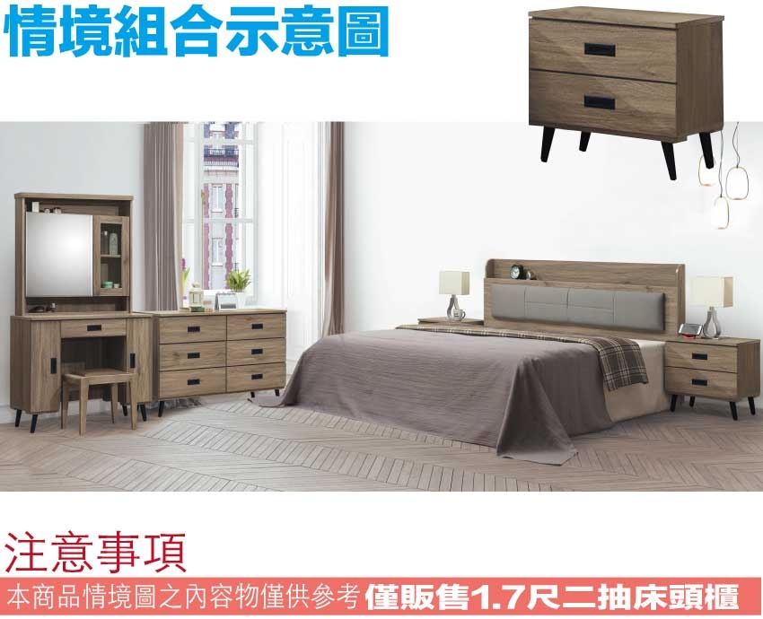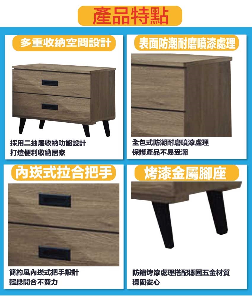 - ◆產品名稱:【綠家居】格斯1.7尺二抽鐵腳床頭櫃
