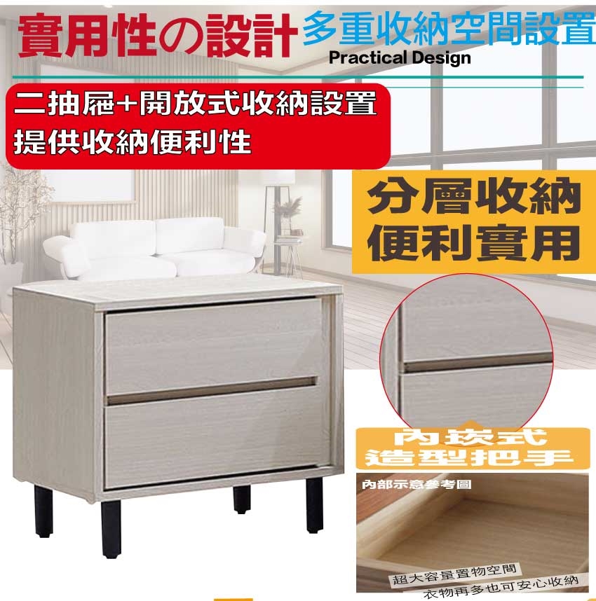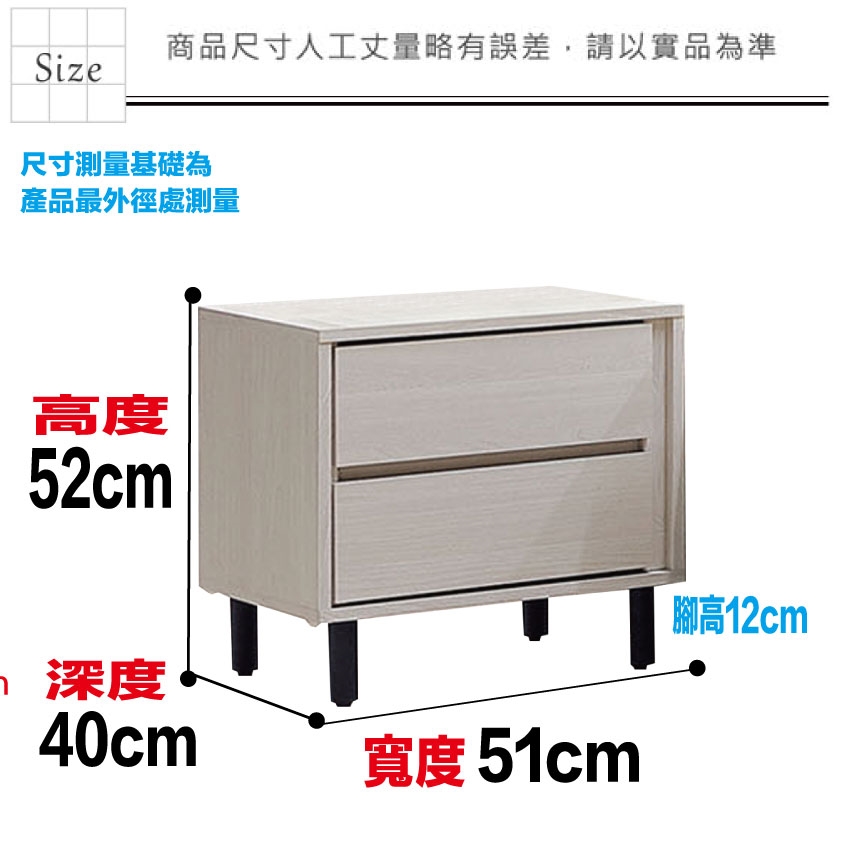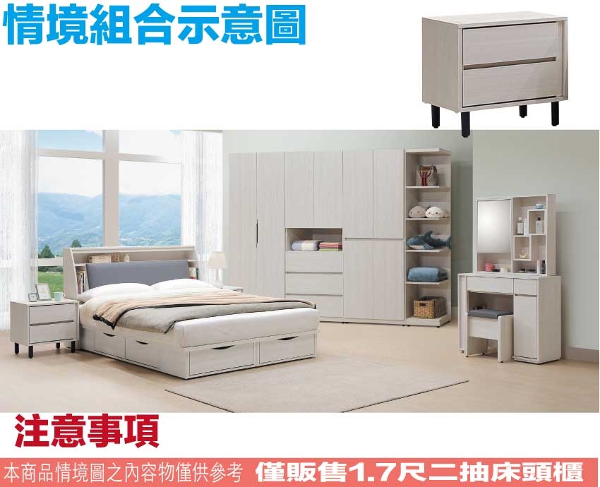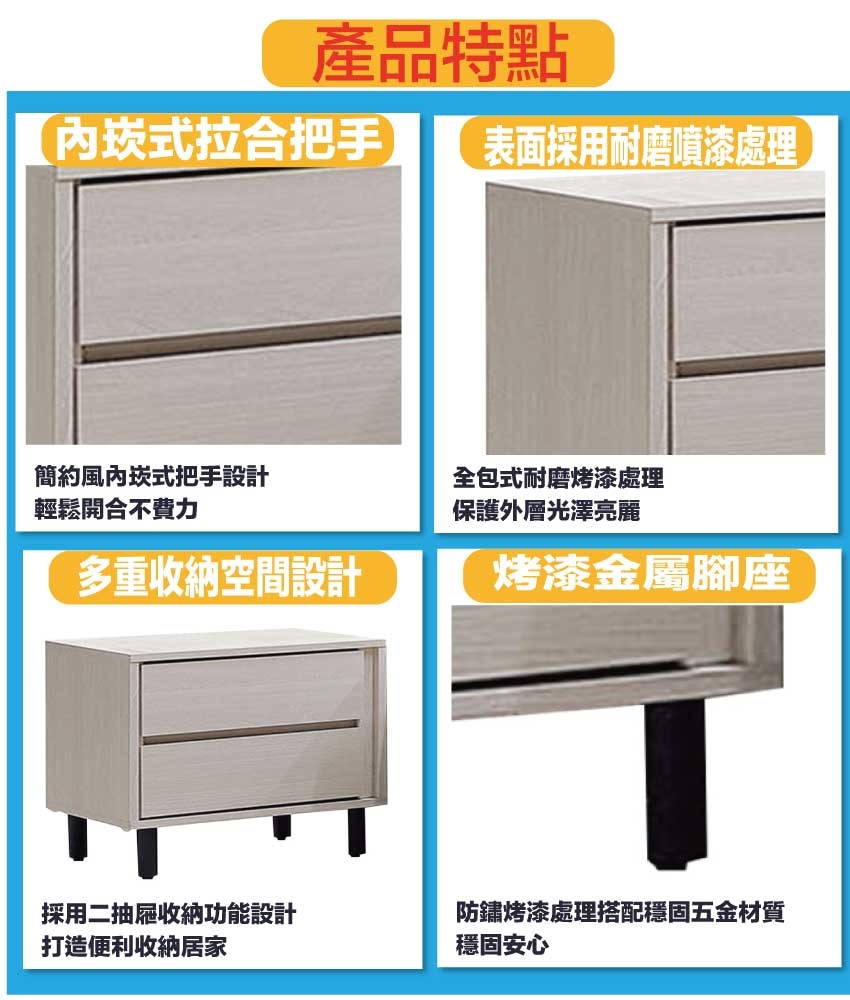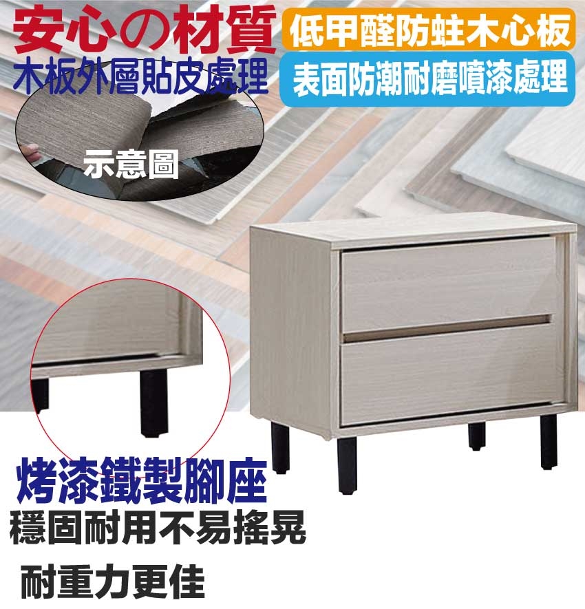 - ◆產品名稱:【綠家居】福登1.7尺二抽床頭櫃