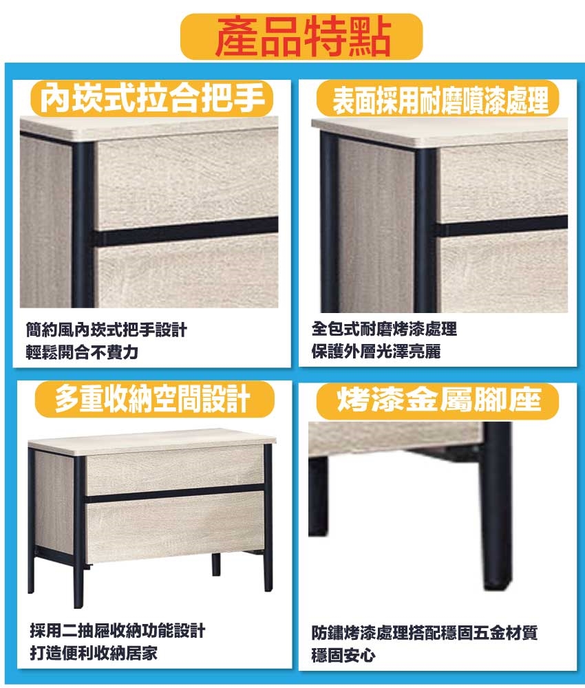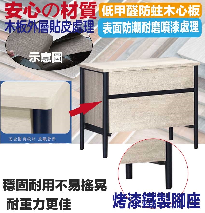 防蛀木心板+烤漆金屬腳座等安心材質製造