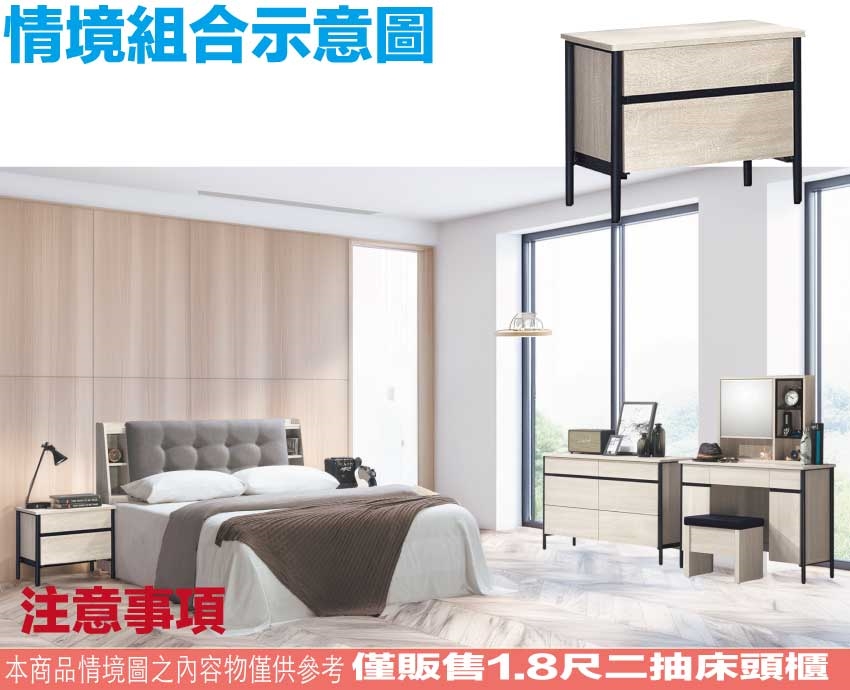 - ◆產品名稱:【綠家居】摩泰1.8尺二抽床頭櫃