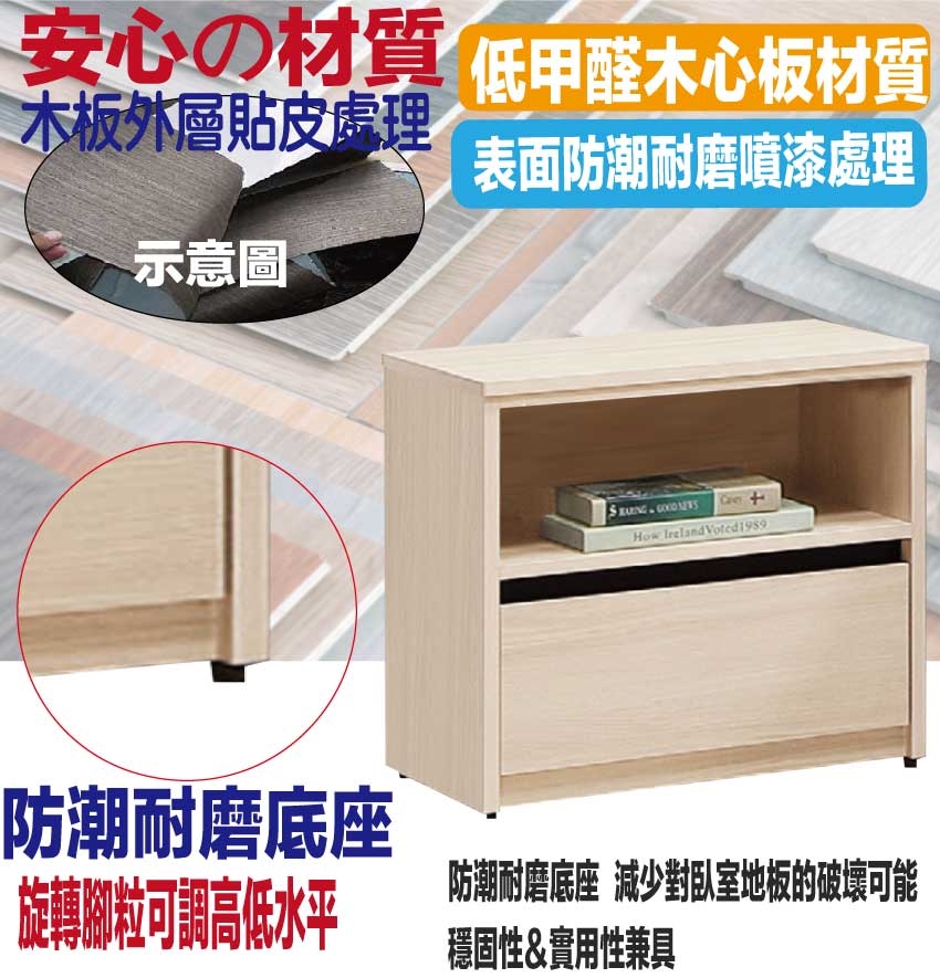 材質:防蛀木心板+防潮耐磨底座(可調高低水平)
