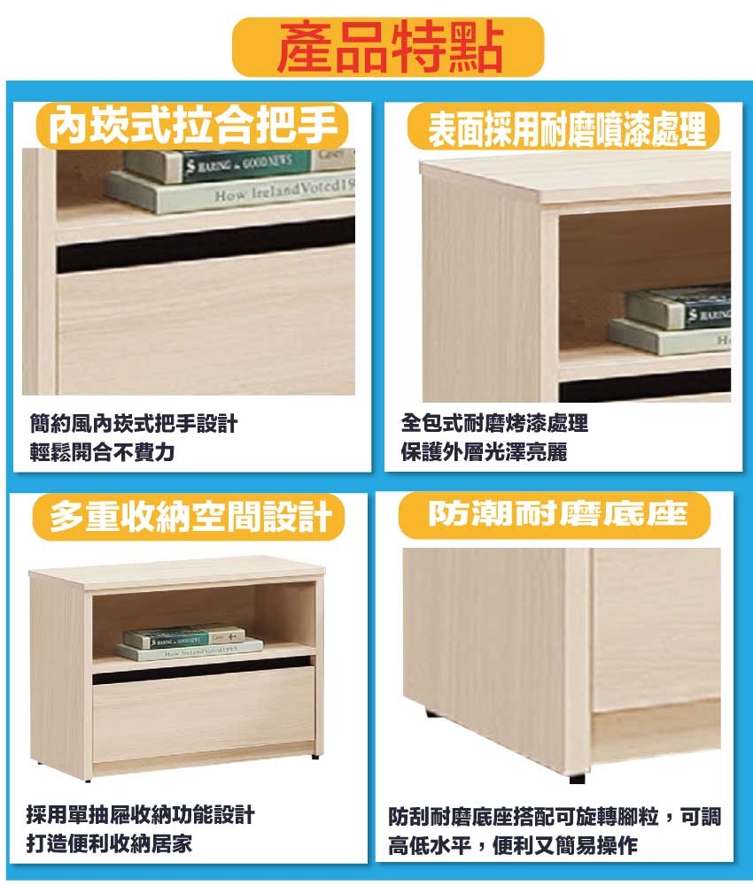 - 產品名稱:【綠家居】愛可1.7尺單抽床頭櫃