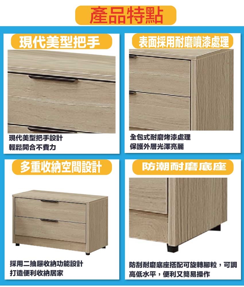防蛀木心板+防潮耐磨底座(可調高低水平)等安心材質製造