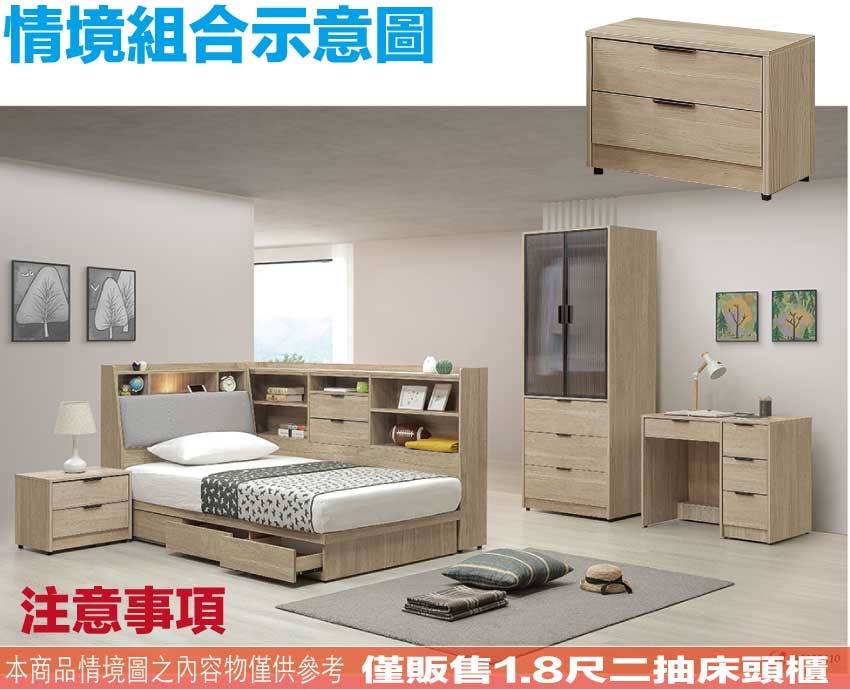 - 產品名稱:【綠家居】珊可1.8尺二抽床頭櫃