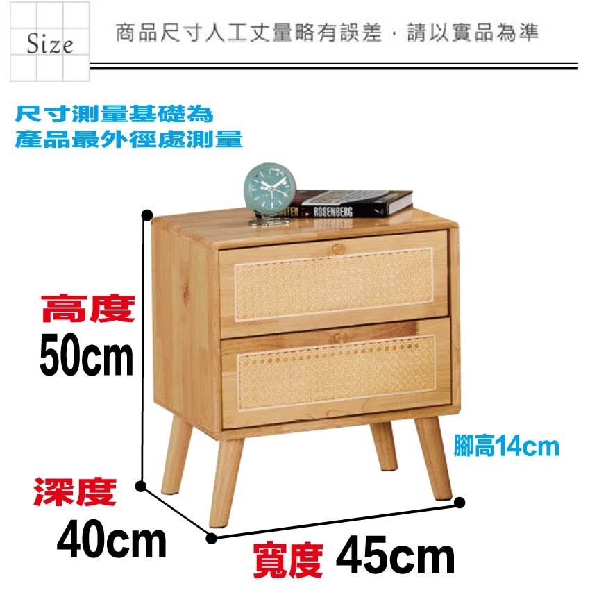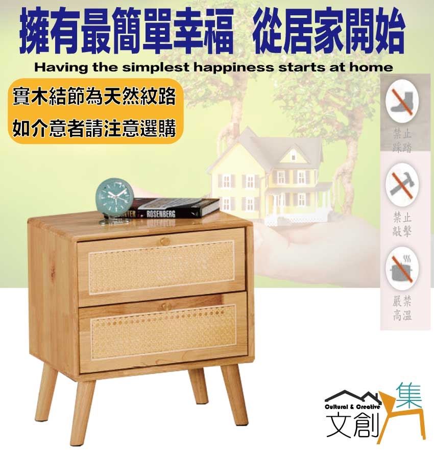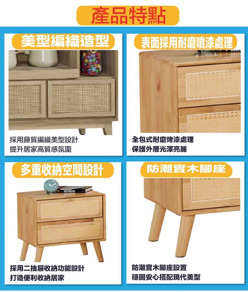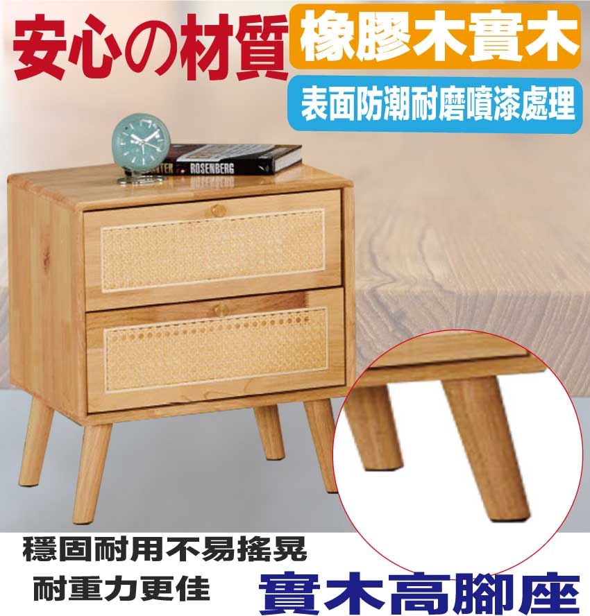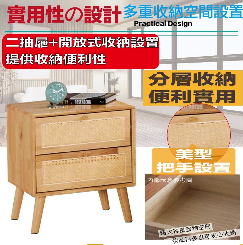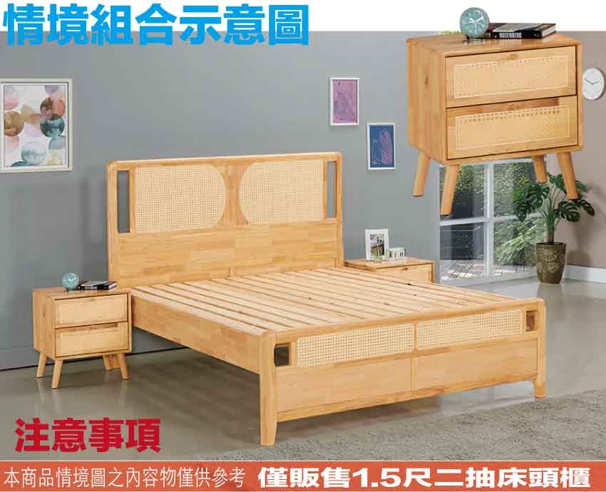 - ◆產品名稱:【綠家居】亞卡1.5尺藤編實木二抽床頭櫃
