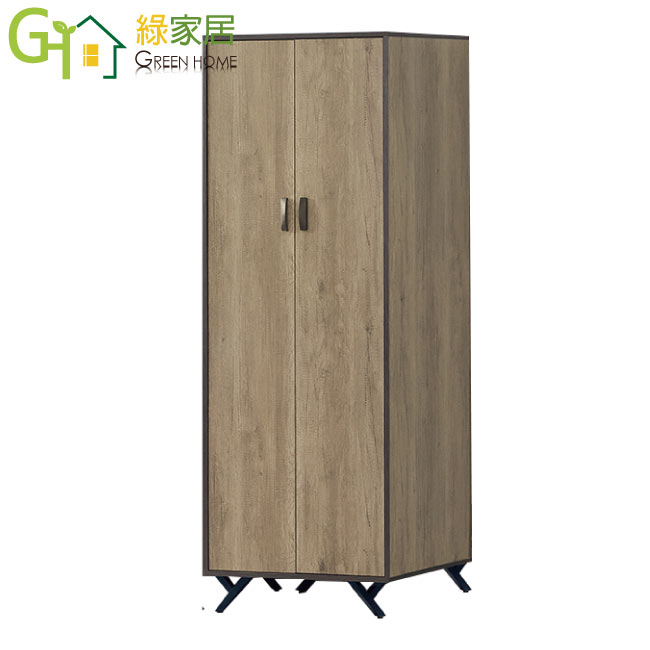 【綠家居】謝克 時尚2.5尺木紋雙吊衣櫃/收納櫃(吊衣桿+開放層格)