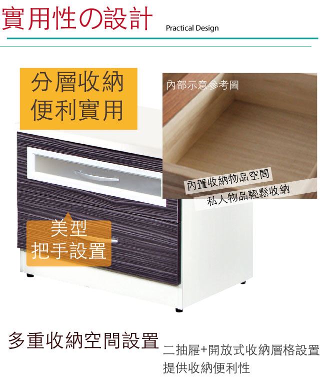 材質 | ◆產品名稱: 【綠家居】菲力 環保2尺南亞塑鋼二抽床頭櫃/收納櫃 尺寸:(寬)60x(深)42.8x(高)49/公分 ◆材質: 主體:南亞塑鋼舒美板+中空發泡板+噴砂壓克力 軌道:五金滑軌結構 |