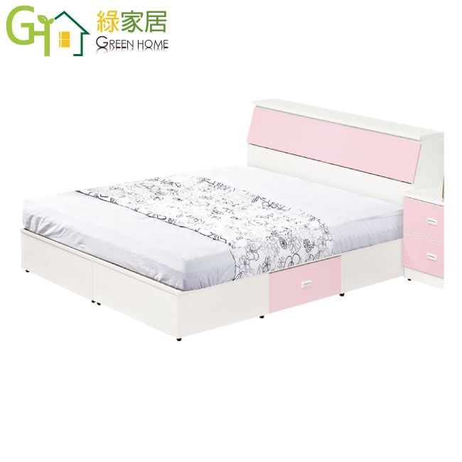 【綠家居】羅菲亞 環保5尺雙人南亞塑鋼收納床台組合(床頭箱+床底側邊開合二抽屜設置)