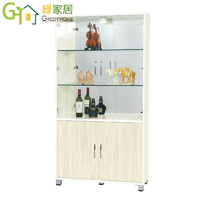 【綠家居】瓦多 環保3.1尺南亞塑鋼玻璃四門高展示櫃/收納櫃