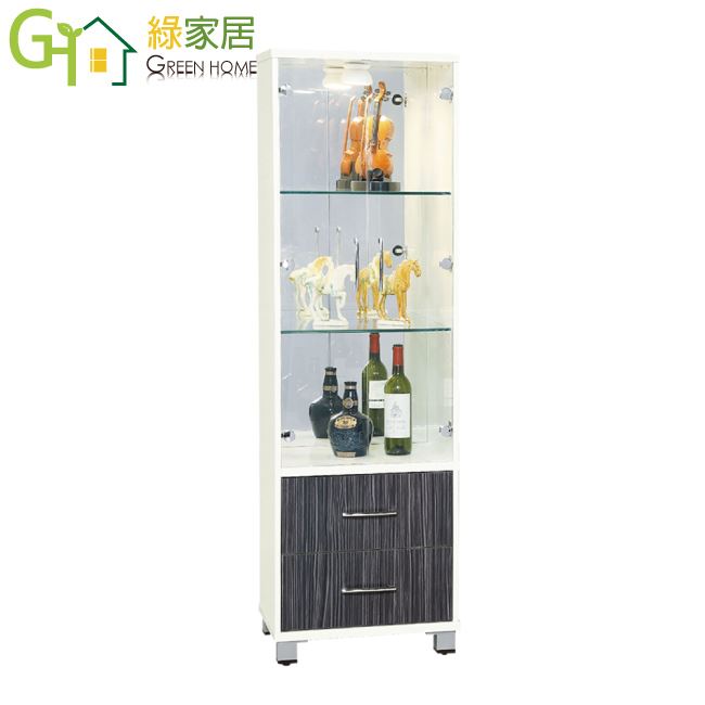 【綠家居】樂蒂 環保1.6尺南亞塑鋼玻璃二門二抽高展示櫃/收納櫃