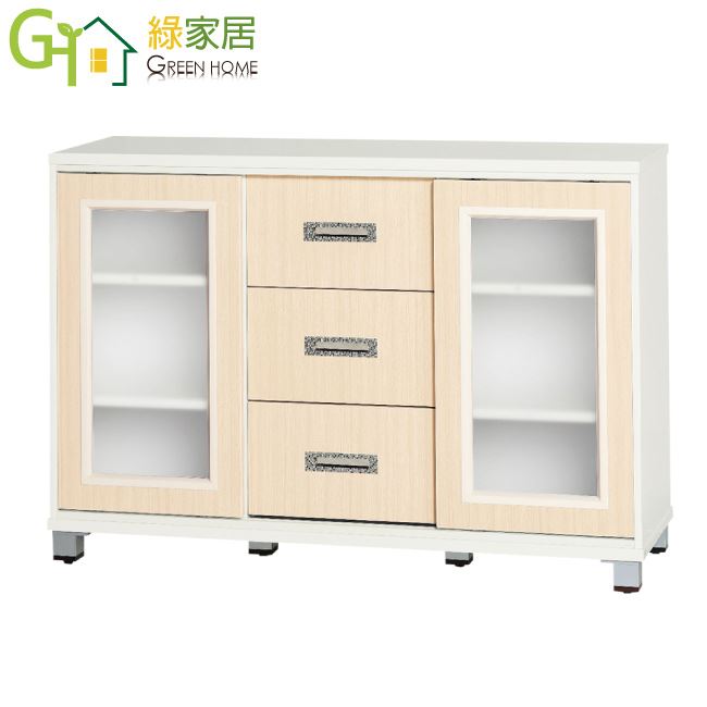 【綠家居】樂蒂 環保4.6尺南亞塑鋼推門三抽餐櫃/收納櫃
